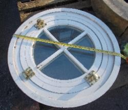 bp19002 Reclaimed, natural stone round window with wooden window.