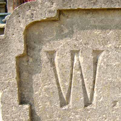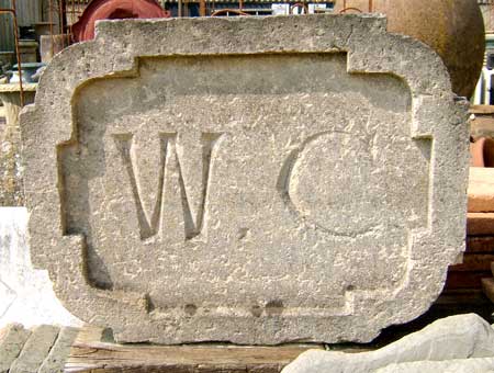 BP006 A reclaimed carved stone with the initials "W.C." carved into it. Dated 1890 from a building in Swindon Old Town.