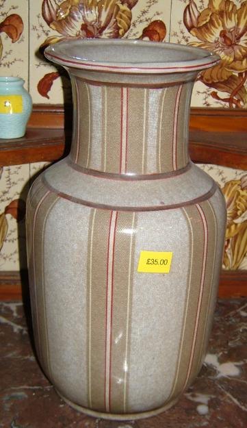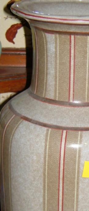 ce1003 A striped patterned beige ornamental vase.