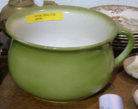 A green Royal Doulton Chamber pot..