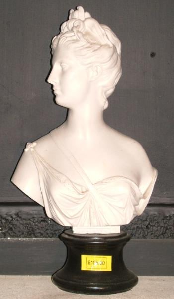 A bust of a lady on a plinth.