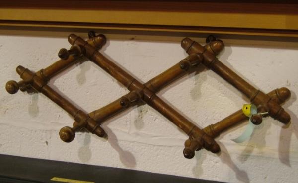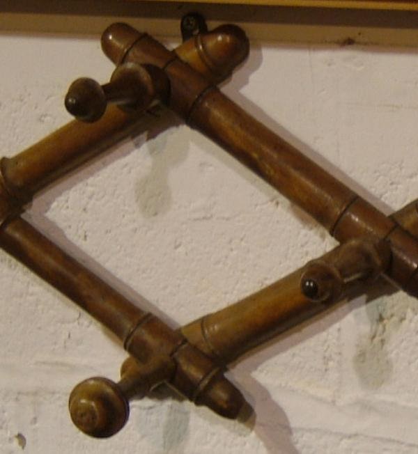 A reclaimed wooden, expanding, set of hat & coat pegs.