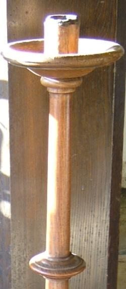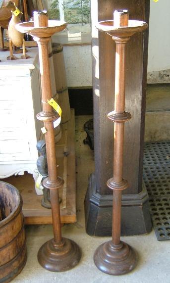 fu1005 A pair of old, reclaimed, tall wooden candle sticks, from a church in Oxford.
