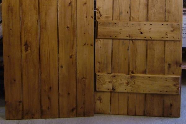 A manufactured reclaimed Pine, Bead and Butt door, with 4 ledges on the reverse side. The colour of the timber is dependant upon what is available at a particular time. The doors shown have been waxed by us , with a "Rustic Pine" finish. This is included within the price