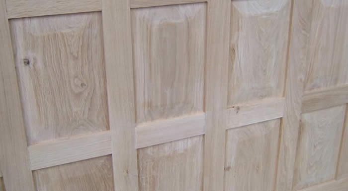 A 3 piece section of manufactured Oak wall panelling, with small raised panels. This is supplied "In the White" for finishing by others.