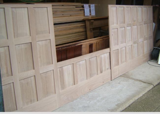do0803 A 3 piece section of manufactured Oak wall panelling, with small raised panels