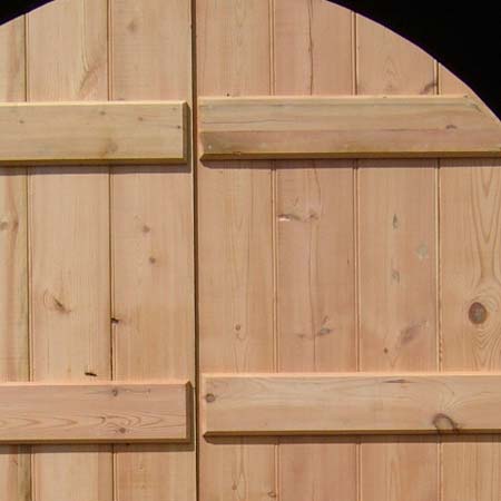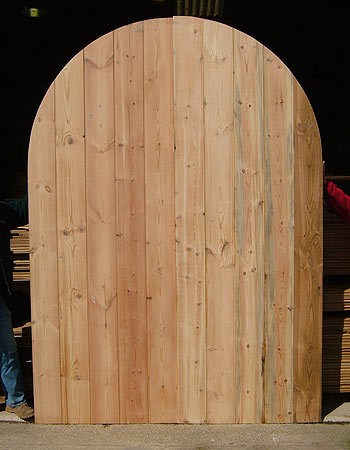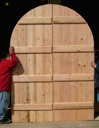 do004 A pair of semi-circular, arched top, bead & butt, ledged doors made from reclaimed pine