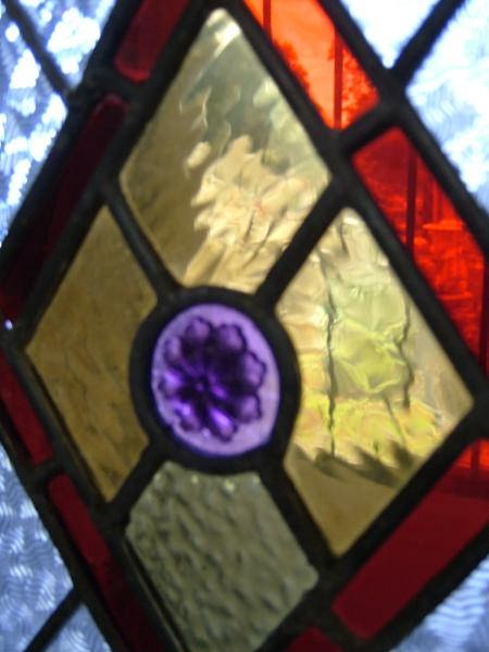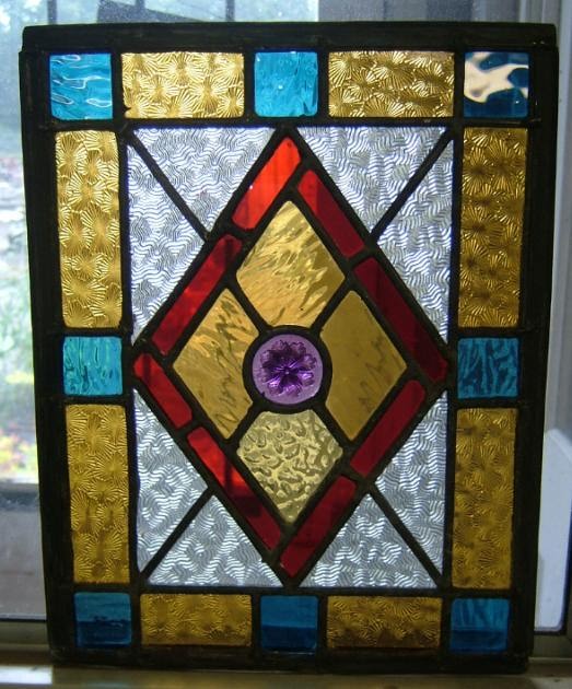 gl0906 Reclaimed leaded stained glass ,with unusual patterned glass and a raise centre motif.