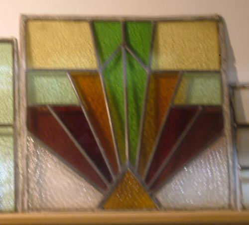 gl0820 A reclaimed piece of leaded light glass with art deco sytle stain glass motif.