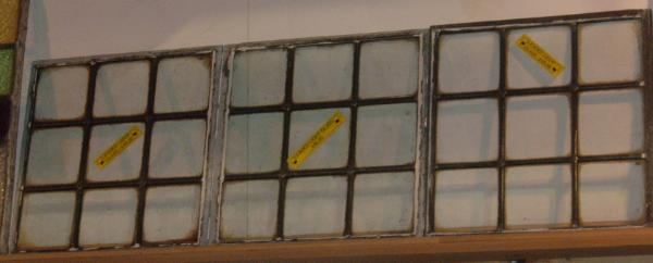 gl0819 Several pieces of reclaimed clear glass leaded lights.