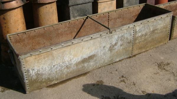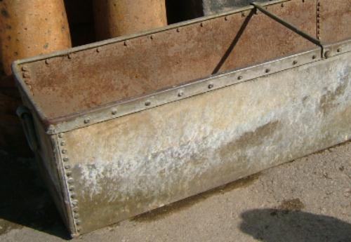 st1112 A large galvanised water trough, with riveted joints and side handles.