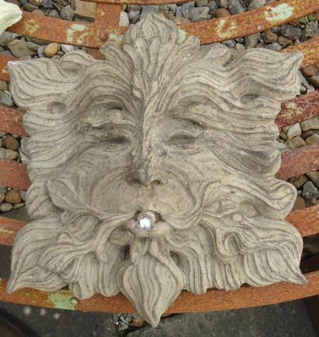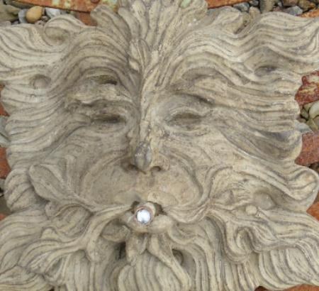 fo121002 A cast, wall mounted fountain of "Green Man".