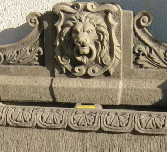 fo0913 A reproduction "Lions Head" fountain with bowl.
