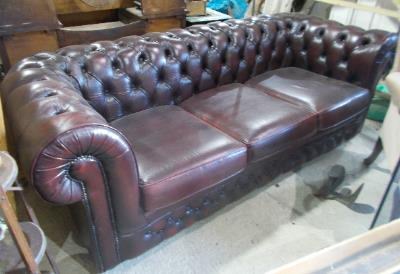 fu19001 Reclaimed, leather Chesterfield sofa. In very good condition.