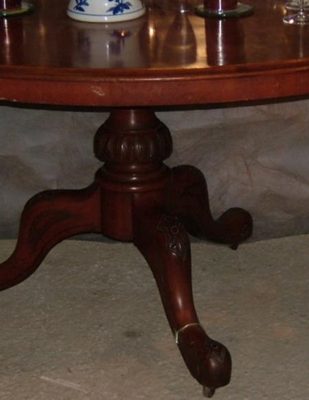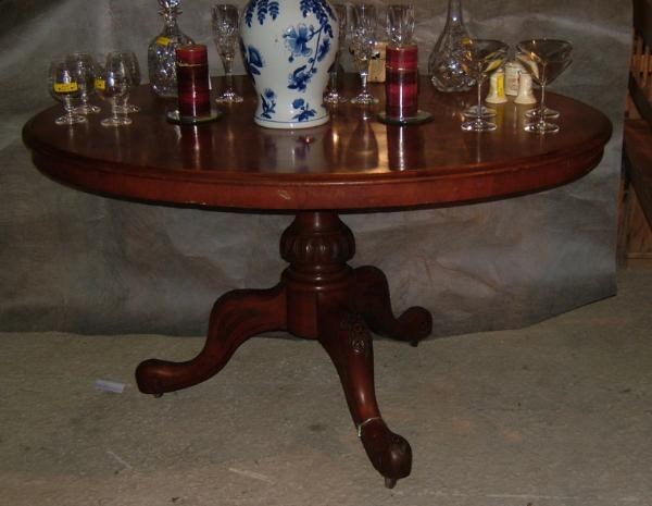 fu0912 An old reclaimed Oval Mahogany table on a tripod base.