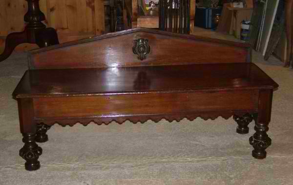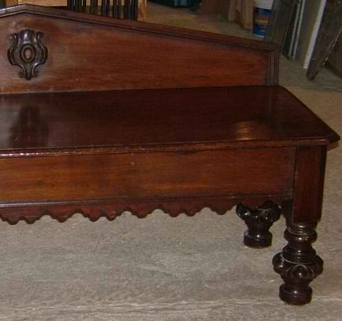 (we think Mahogany) Has a draw on right hand side under seat (made to be hidden, no indication to show a drawer is there).