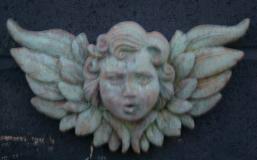 gp0913 A cast, Verdi-gris "Angel's Head " wall plaque or water feature.