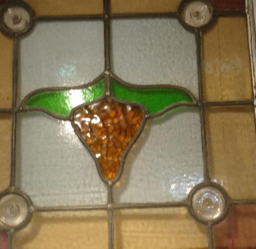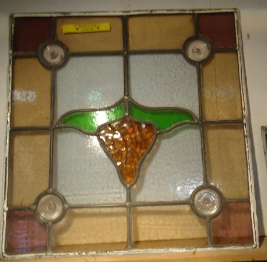 gl142001 A reclaimed, stained glass leaded light window with 4 small "Bulleyes" within it.