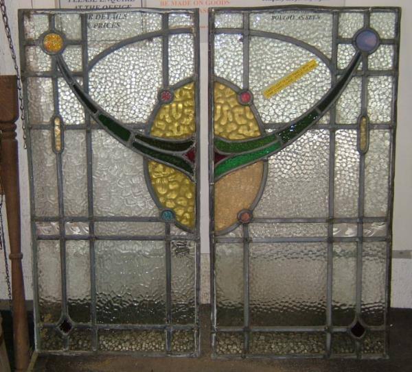 gl0901 A pair of reclaimed leaded lights with coloured stained glass.