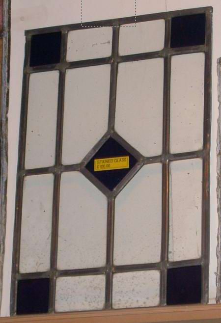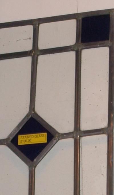 gl0814 A new leaded light glass with some blue stained glass in centre and in corners.