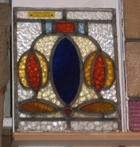 gl0802 A pair of reclaimed stained glass leaded lights.