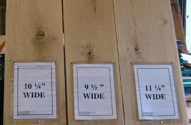 The 5 widths of board available are listed below and those illustrated in the top picture, on the left, indicate the general quality of the boards we normally have in stock.