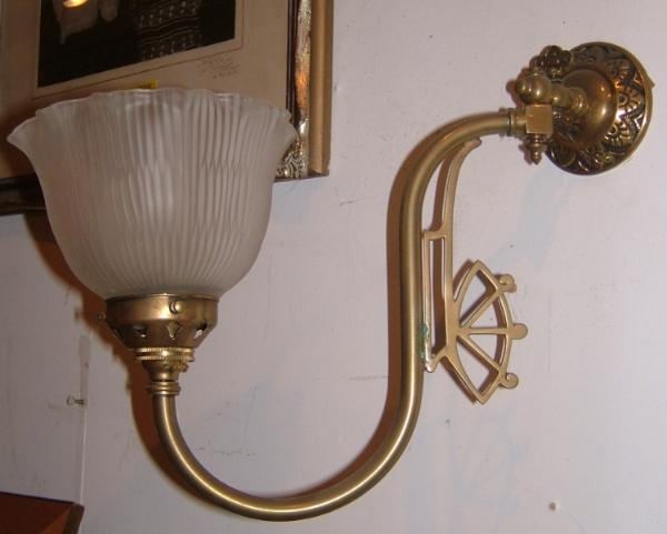 im0927 An Antique gas lamp, converted for electricity, with an opaque glass bowl