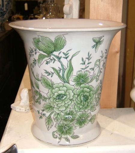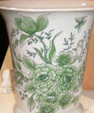 A green flower patterned decorative vase..