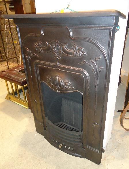 fp122015 A reproduction cast iron, small Art Nouveau style, fireplace : "Jasmine"