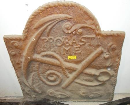 fp19008 A reclaimed cast iron fire back, with an achor raised motif.
